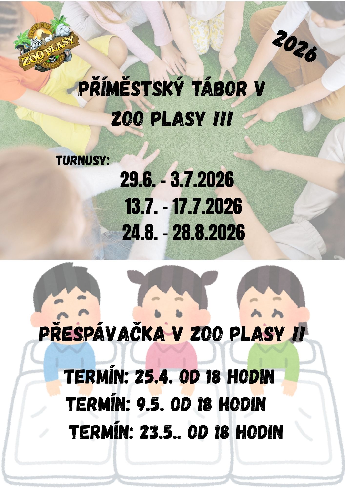 Děti na přespávačku přihlašujte na tel.čísle: 728 036 250 nebo na mailu: zoolog@zooplasy.cz